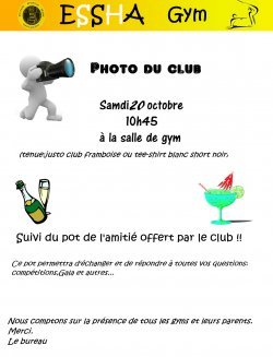 Samedi 20 octobre photo du club : 10h45 à la salle de gym.