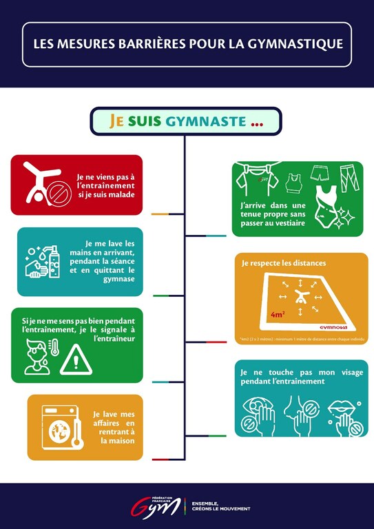 Suite aux nouvelles recommandations de a FFGYM, veuillez prendre connaissance du nouveau protocole sanitaire applicable dès lundi 31 Août et ce jusqu'à nouvel ordre.